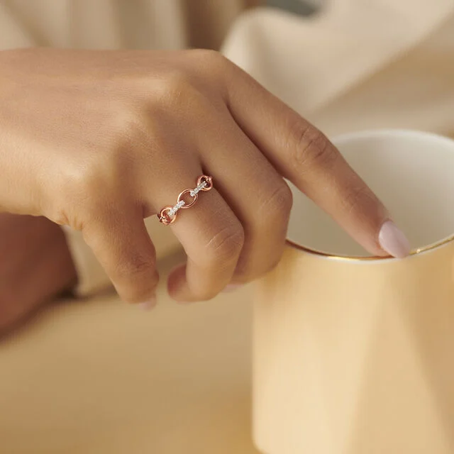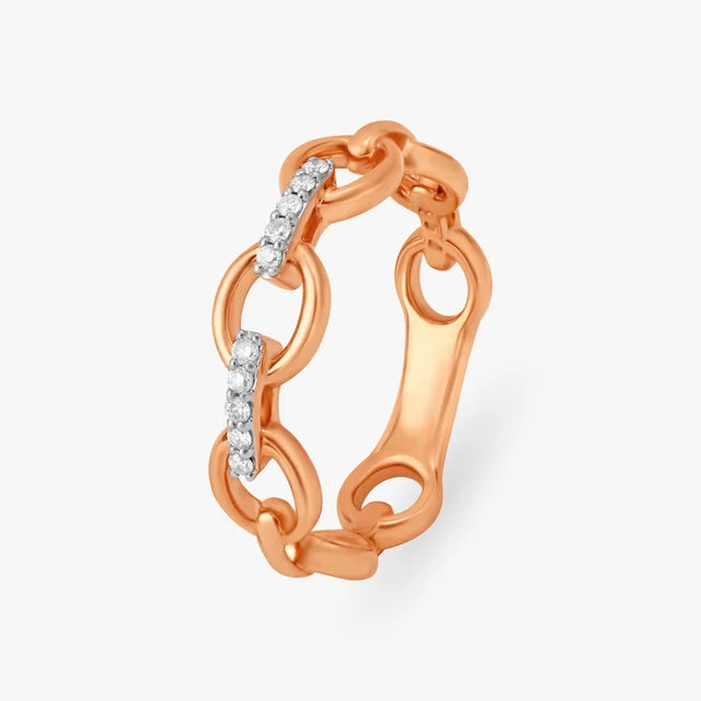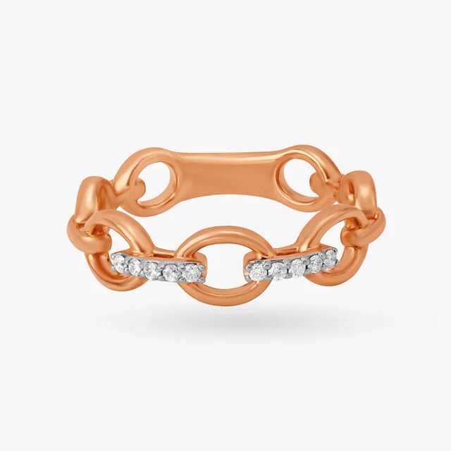 This elegant chain-style diamond ring is crafted in premium rose gold, featuring a modern linked design accented with sparkling diamonds. Perfect for daily wear as well as special occasions, this ring offers a unique blend of contemporary style and timeless luxury.