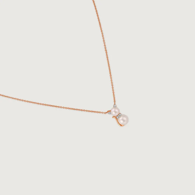 Step into timeless sophistication with this exquisite gold & diamond necklace, featuring two perfectly aligned luminous pearls. The sleek and modern design brings a touch of refined elegance, making it a versatile piece.