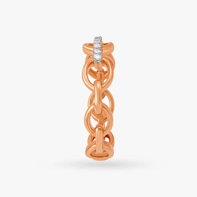 This elegant chain-style diamond ring is crafted in premium rose gold, featuring a modern linked design accented with sparkling diamonds. Perfect for daily wear as well as special occasions, this ring offers a unique blend of contemporary style and timeless luxury.