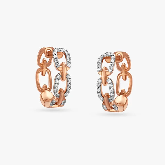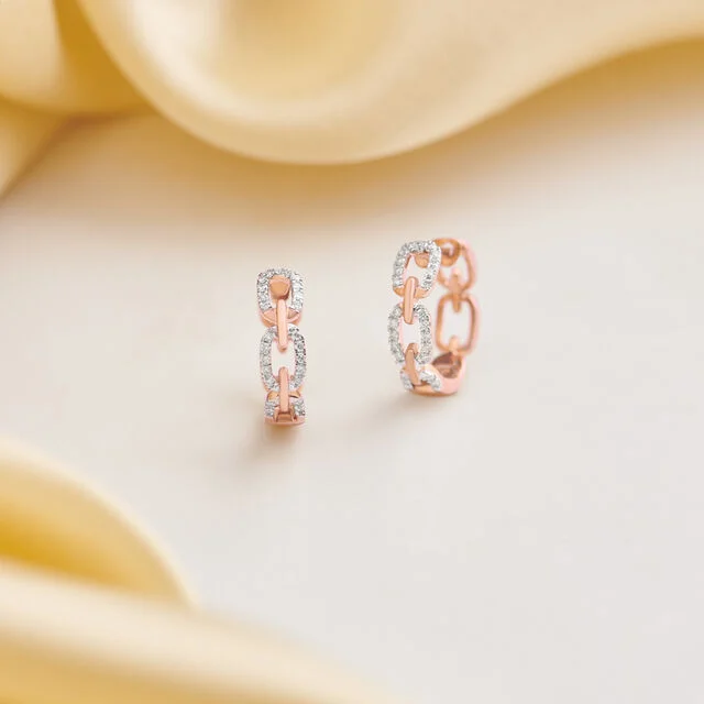 A classic link pattern forms these elegant hoop earrings, crafted in 18 karat rose gold, studded with diamonds. Stone Clarity: SI2