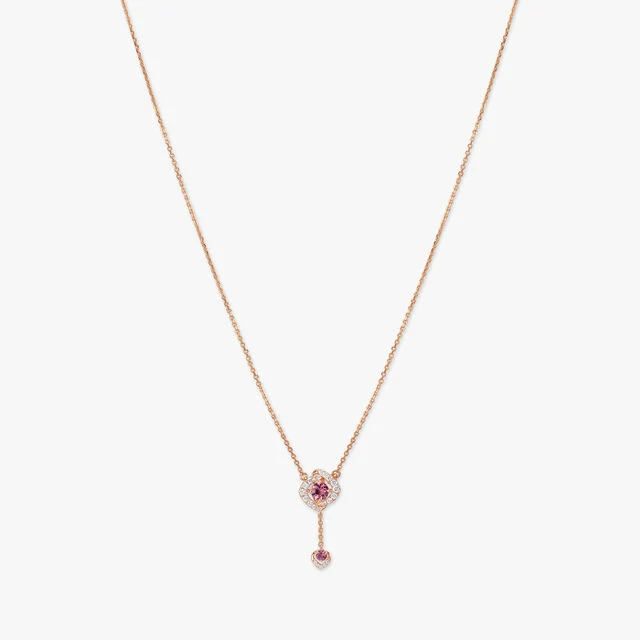 Fall head over heels with this dazzling 18 Karat Necklace, where pink tourmaline and Diamonds come together in rose gold like the perfect love potion-sweet, sparkly, and utterly irresistible.